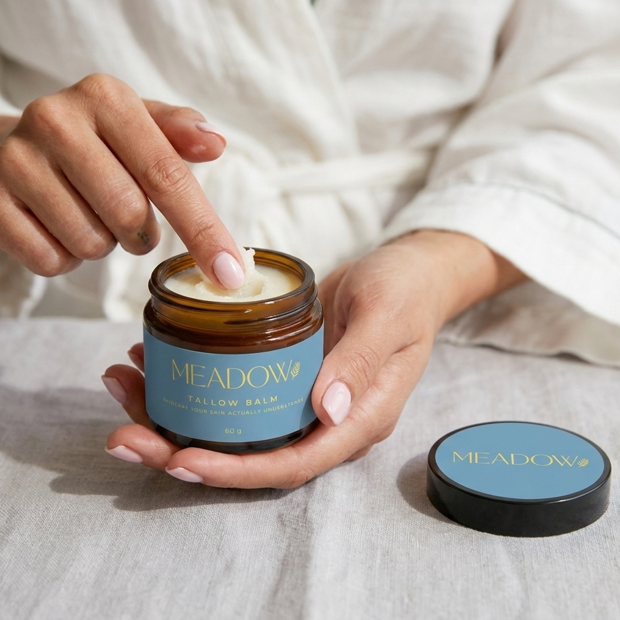 Our Tallow Balm contains only 4 natural ingredients: grass-fed, grass-finished beef tallow, cold-pressed organic olive oil, flower essential oil and organic vitamin E. We use manuka honey in some variations for its additional healing properties. No fillers, no chemicals, just raw, unadulterated skin nutrition that lets your skin thrive naturally.